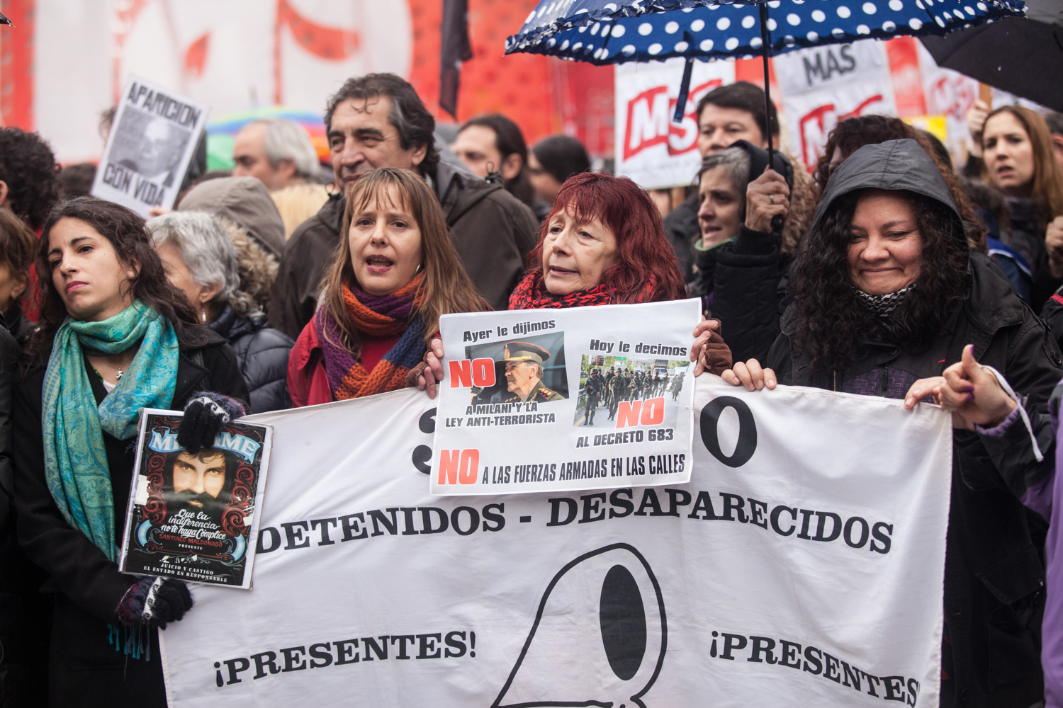 Manifestación contra las FFAA en la calle.