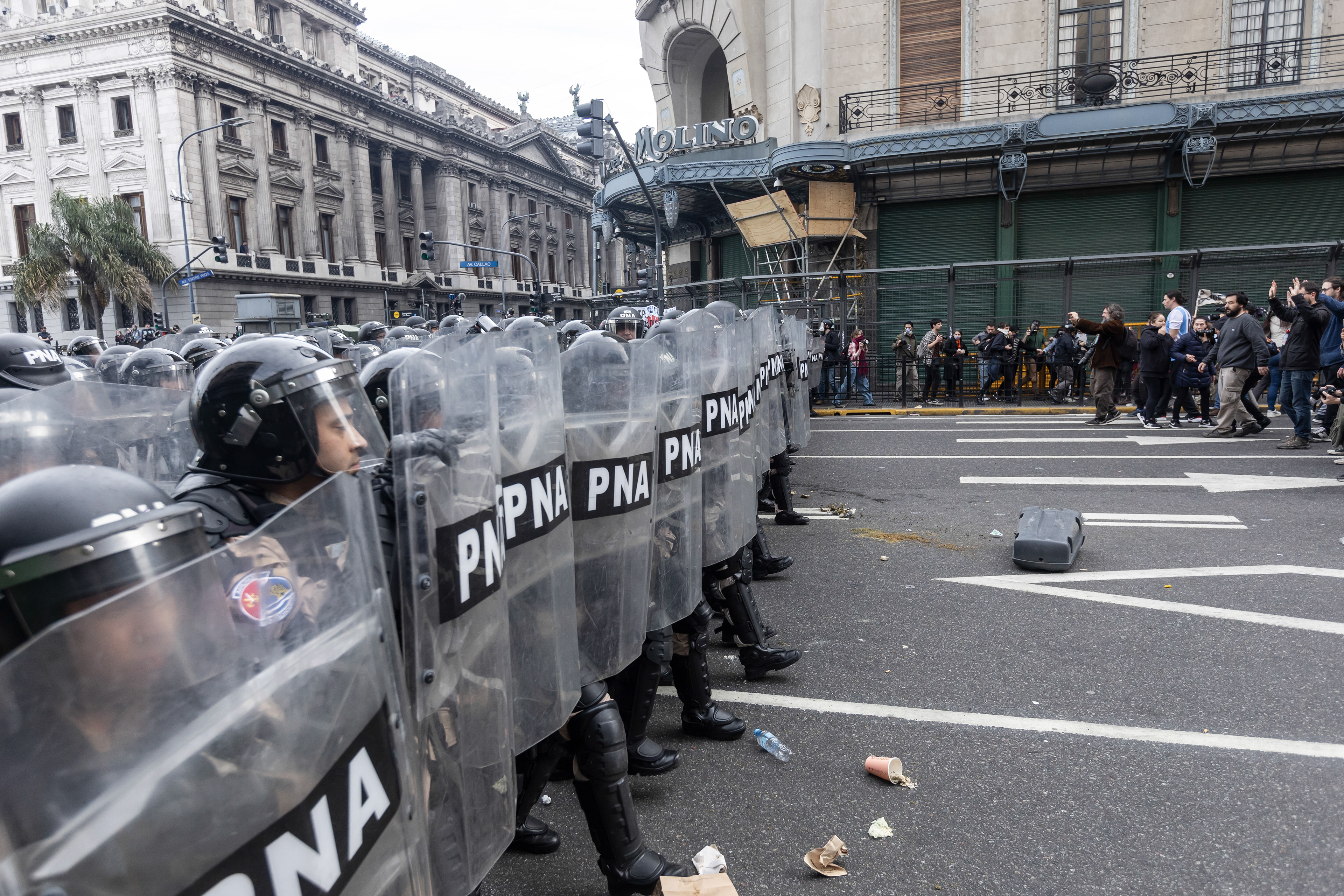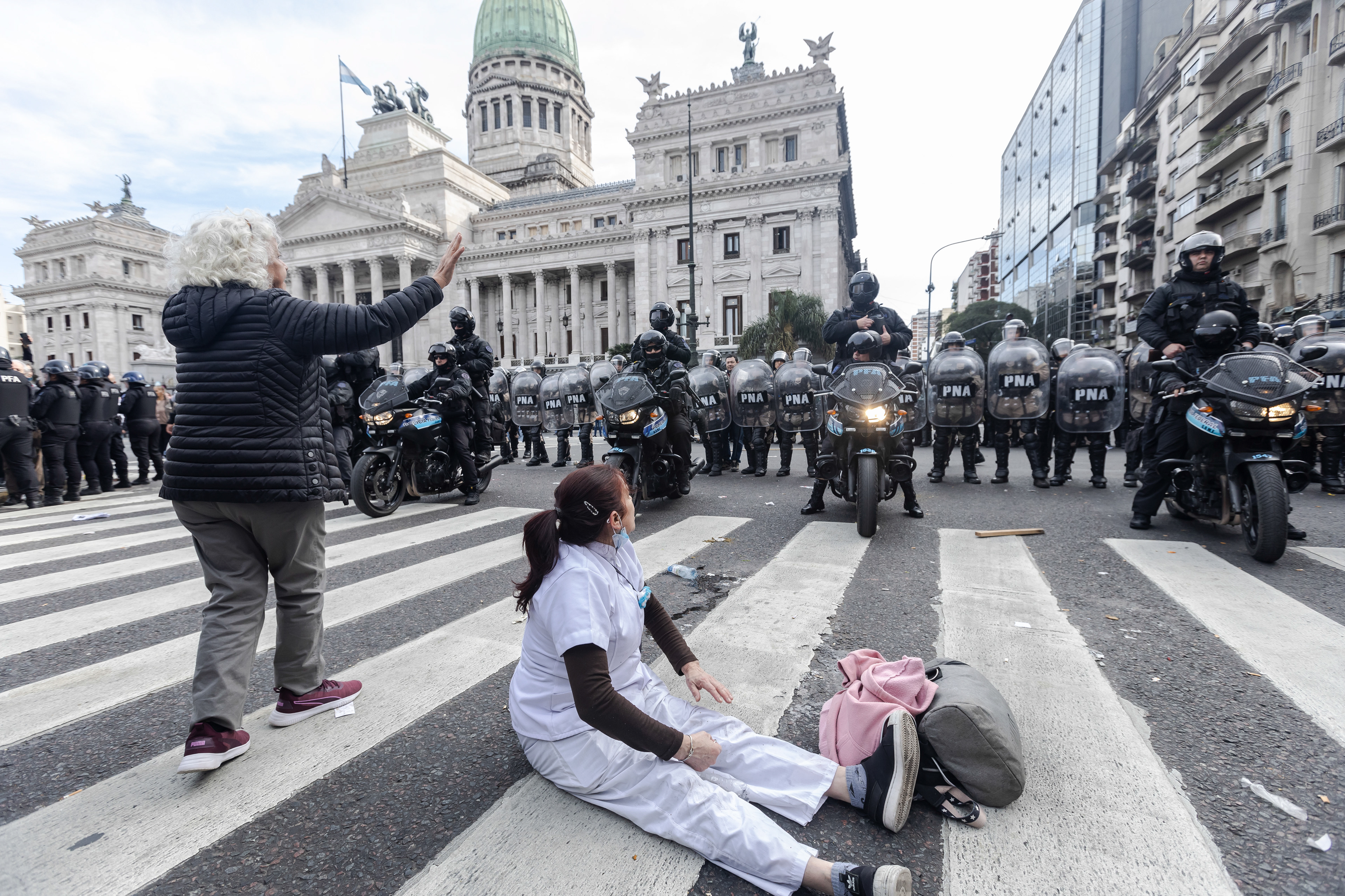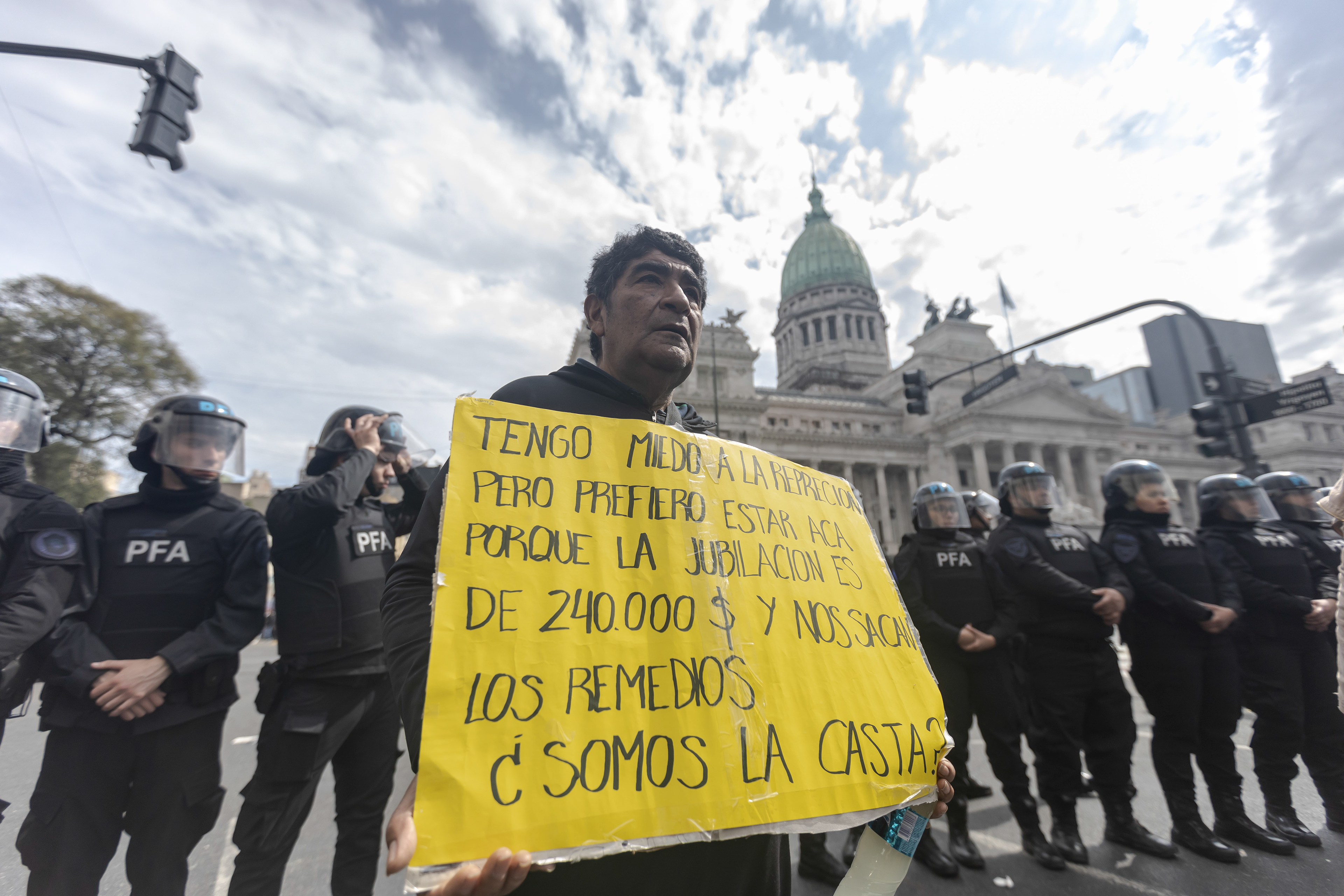 Protestas de jubilados frente al Congreso de la Nación.